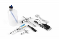 Sada obsahuje: Tankovací láhev 250ml, žhavítko s 2200mAh Aku a nabíječkou USB, Svíčkový klíč s držákem na stand. svíčky a klíčem 5,5 a 7mm, plastový chcípák výfuku, plastový klíč 17mm pro kola a spojku 1/10 On Road.